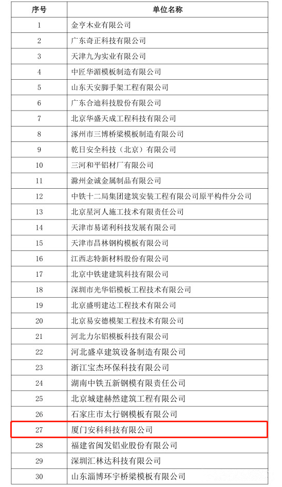 今日,中國(guó)模板腳手架協(xié)會(huì)公布了第二批入選中國(guó)鐵建集采平臺(tái)會(huì)員企業(yè)名單,廈門(mén)安科科技有限公司(以下簡(jiǎn)稱(chēng):廈門(mén)安科)憑借雄厚的科研創(chuàng)新能力、優(yōu)質(zhì)的發(fā)展?jié)摿土己玫钠放茖?shí)力等方面被協(xié)會(huì)推薦入選進(jìn)入中國(guó)鐵建集采平臺(tái)系統(tǒng)——鐵建商城(CRCC商城)。